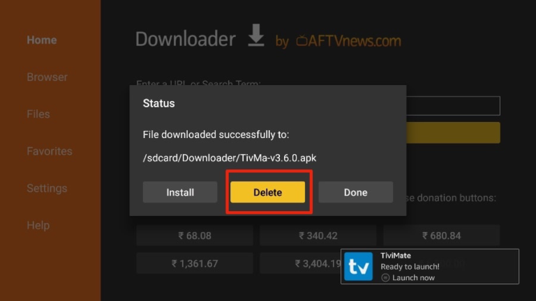 Je suggère à nos lecteurs de supprimer le fichier APK sur le FireStick car il ne sert plus à rien – nous l’avons déjà utilisé pour installer TiviMate. En général, je vous conseille de garder votre FireStick exempt de fichiers et de supports inutiles. Un stockage insuffisant entraînera des performances médiocres sur l’ensemble de l’appareil.
